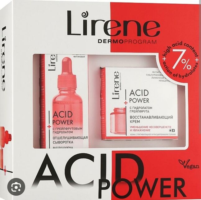 Lirene Acid Power sivorotkani 30ml + yuz uchun krem 50ml sovg'a to'plami