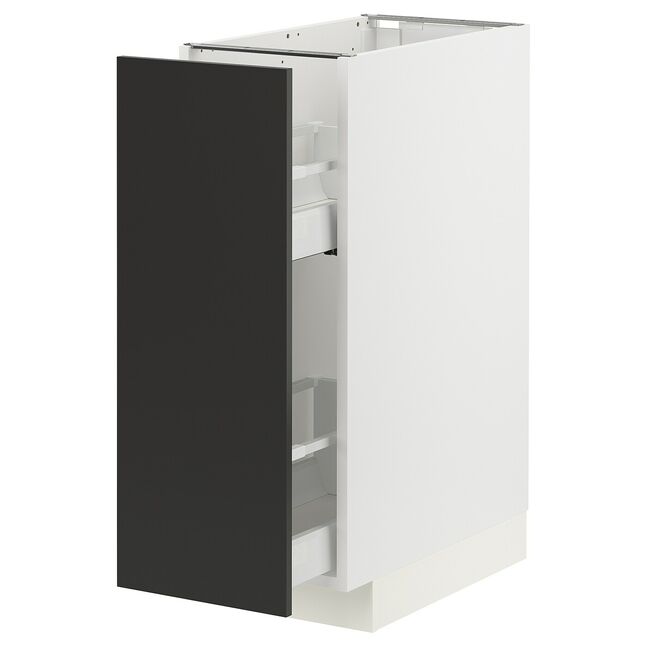 METOD oshxona tizimi sizning orzuingizdagi oshxonani loyihalash uchun cheksiz imkoniyatlarni beradi. Mat qora rangdagi NICKEBO jabhalari bilan birlashtirilgan, siz shaxsiylashtirish oson bo'lgan zamonaviy va zamonaviy ko'rinishga ega bo'lasiz.