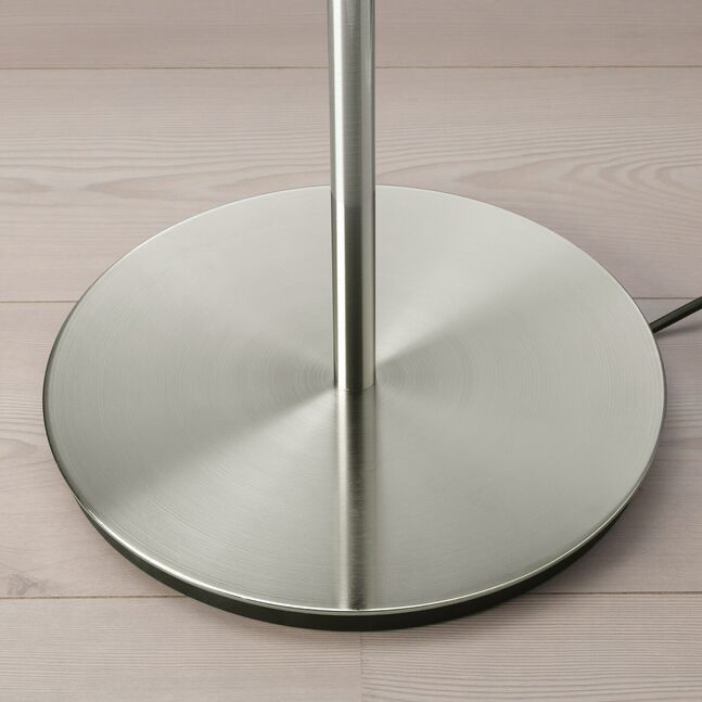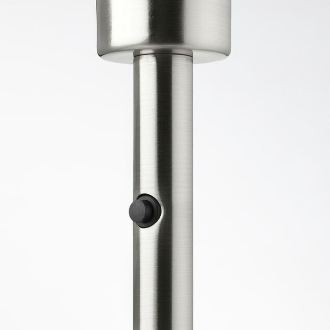 Nikel bilan qoplangan taglik toza chiziqlar va tepada oq to'qimachilik soyasi, chiroq yoqilganda tekis va dekorativ yorug'likni tarqatadi. Uslub kabi? Siz bir xil seriyadagi ko'proq lampalar bilan bezashingiz mumkin.