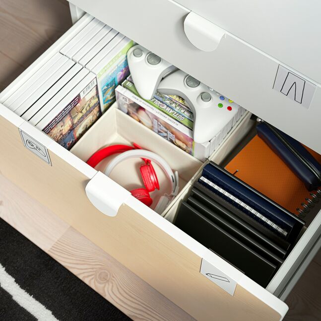 Saqlash mebelingizning ichki qismini yoki ochiq javonlarni tashkil qilish uchun bolalar IKEA-dan bizning qutilarimizdan biri bilan to'ldirilishi mumkin. Alohida sotiladi.