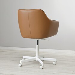 Yumshoq shakllar va chiroyli plomba bilan aylanadigan stul. Barcha turdagi xonalarda yaxshi uyg'unlashgan bardoshli teri bilan qoplangan – va harakatlanishni osonlashtiradigan g'ildiraklar bilan.