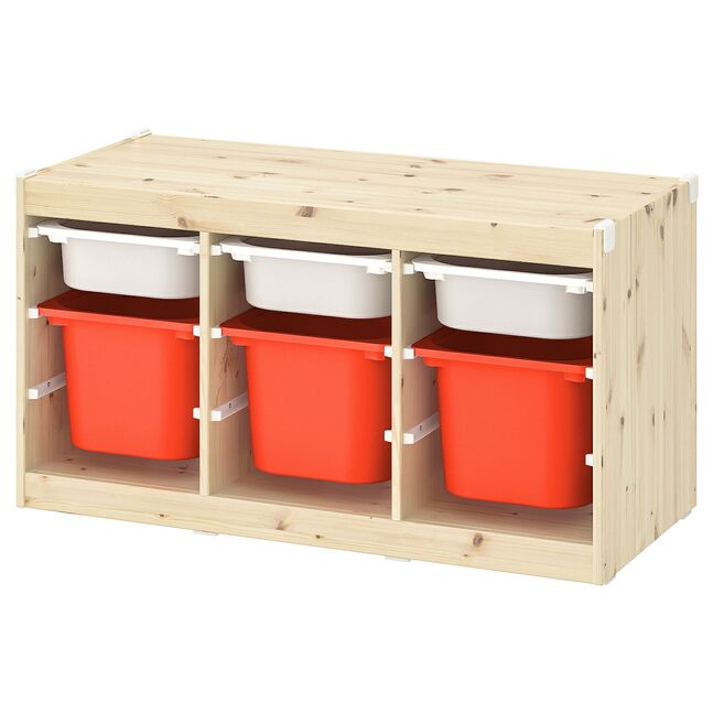 Bolalarga o'yin uchun joy kerak – va TROFAST kabi o'yinchoqlar uchun yaxshi joy – bir qator mustahkam yog'och ramkalar va engil plastik qutilar, bolangiz osongina chiqib ketishi, olib yurishi va orqaga qaytarishi mumkin.