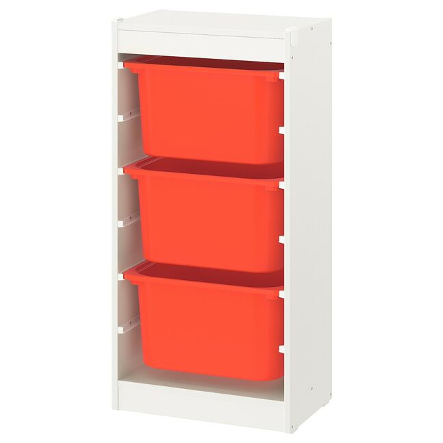Bolalarga o'yin uchun joy kerak – va TROFAST kabi o'yinchoqlar uchun yaxshi joy – bir qator mustahkam yog'och ramkalar va engil plastik qutilar, bolangiz osongina chiqib ketishi, olib yurishi va orqaga qaytarishi mumkin.