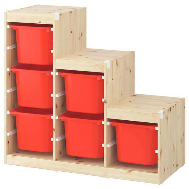 Bolalarga o'yin uchun joy kerak – va TROFAST kabi o'yinchoqlar uchun yaxshi joy – bir qator mustahkam yog'och ramkalar va engil plastik qutilar, bolangiz osongina chiqib ketishi, olib yurishi va orqaga qaytarishi mumkin.